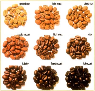 Roasting transforms green coffee into the aromatic brown beans that we purchase, either whole or already ground, in our favorite stores. Most roasting machines maintain a temperature of about 550 degrees Fahrenheit. The beans are kept moving throughout the entire process to keep them from burning and when they reach an internal temperature of about 400 degrees, they begin to turn brown and the caffeol, or oil, locked inside the beans begins to emerge.